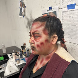 All makeup was done with an Iwata Neo airbrush with EBA Performance airbrush paints and Kryolan blood products.